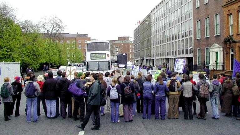 在发言结束以后,学生们游行至外交部。这10分钟的步行要穿过都柏林最繁华的街道。沿途群众都很好奇,索要传单和信息。