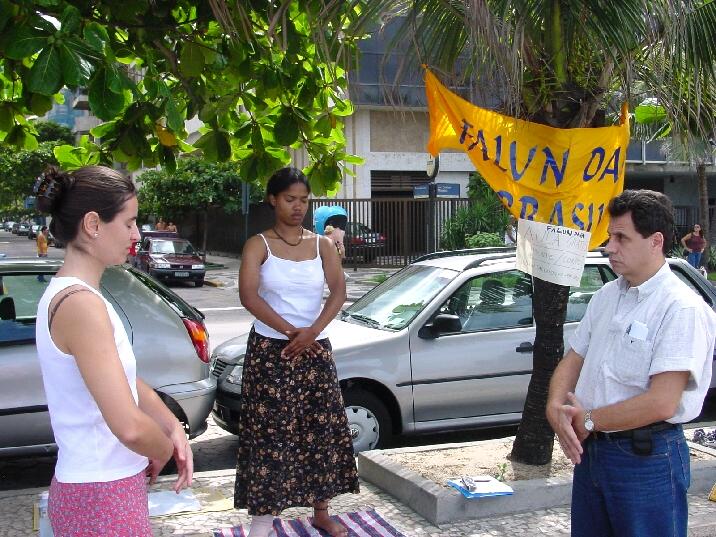 【明慧网2001年5月6日】圣保罗是巴西一个熙熙攘攘的大城市。里约热内卢的人们以美丽的海滩为生活中心,而圣保罗则不同,它是巴西所有商业活动的中心。如果不堵车的话(这种情况比较少见),从这里开车到海边需要一个半小时。因此圣保罗人选择在美丽的公园中锻练身体,以消除繁忙的城市节奏带来的压力。法轮大法的修炼者正是在其中一个美丽的公园中与本地修炼者一起炼功并向所有感兴趣的人们传授这一功法的。