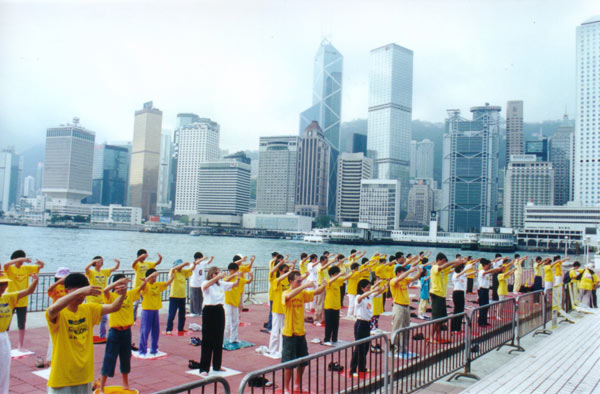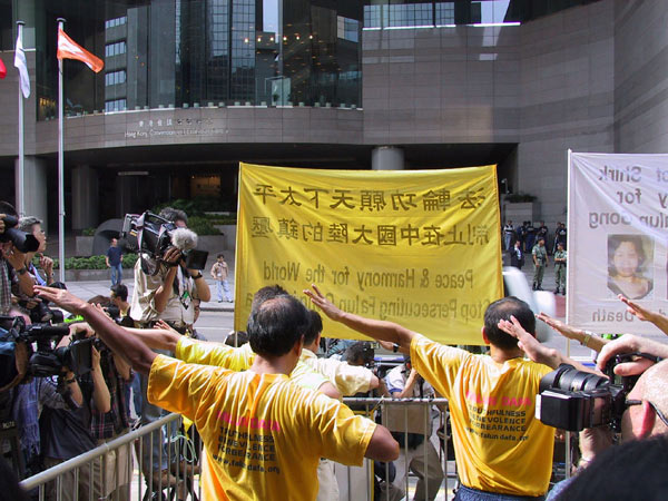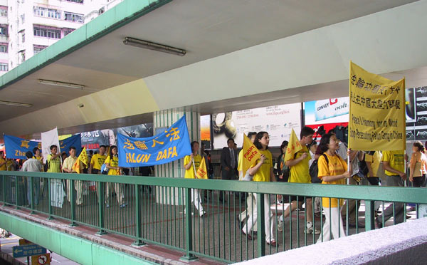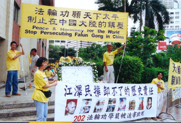 【明慧网2001年5月9日】2001年5月8日香港财富论坛期间法轮功学员活动情况图片报导: