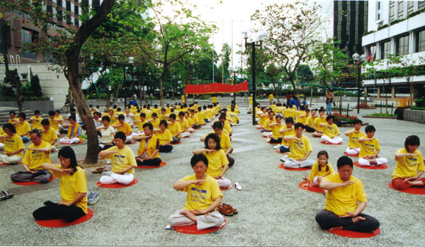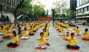 在湾仔伊馆旁集体炼功
