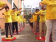 据香港法轮功发言人简鸿章说,这几天在香港集体练功的,包括来自澳洲、台湾、日本、韩国、欧美、澳门和香港的学员,他们将藉这次国际论坛,要求全球关注中国大陆镇压法轮功的不人道做法。