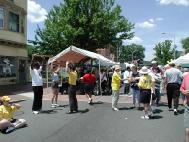 邻近摊位是一对中年西人夫妇,他们早有所闻法轮大法,但不知到哪里可以学炼。当日看到学员展示五套功法,以惊喜的口吻说到:“也可能这是天意,让我们到这里,有幸亲见法轮功。”