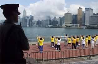 1. 中国大使馆前2. 在市中心3. 穿过市区的洪法游行4. 市区广场的集体炼功