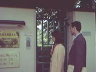 洪法团在芬兰学员的带领下来到了中国驻芬兰使馆前,这时我们的电喇叭出现了干扰,电线接头断了。于是大家平静的开始发正念,5分钟后我们的喇叭立即响了起来,大家又一次看到了大法的威力。