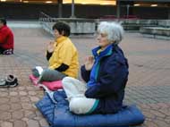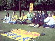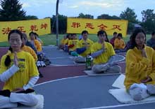 早上在集体炼功时,有一个不明身份的中国人找到公园管理处,唆使公园管理人员阻挠我们在公园集体炼功,学法。但是,学员坚定的正念与善意的解释,说明真相,使我们的正法活动得以顺利进行。在我们第二次集体发正念的时候,邪恶更加疯狂的垂死挣扎,在这个空间的表现是发正念时,来了两个不明身份的下身赤裸的50多岁的男子,也模仿著盘腿立掌,坐在队伍的前面。在场的几位老学员马上发正念铲除邪恶,当下把他们驱除出场。就像师父在2001年加拿大法轮大法交流会上讲法所说的,“这个邪恶它看到了自己要被清除的时候也是极其嚣张的”,那些操纵人的邪恶生命连续冲击了三次,但最终在大法弟子强大的正念面前被清除。