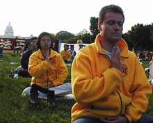 在三个时间段发正念期间,弟子们没有休息,一直交叉在炼动功和静功。大家感到这样非常好。