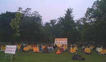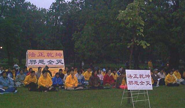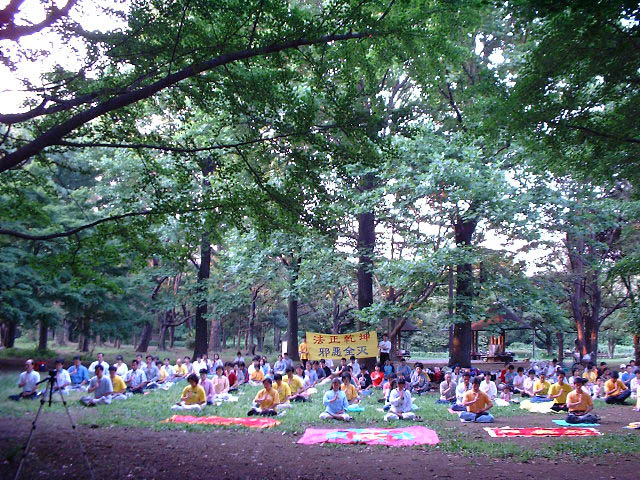 2001年6月3日星期日,来自关东地区的120多名日本大法弟子汇集于东京代代木公园,集体炼功,学法,并于晚上北京时间17,18,19整点,三次和全世界的大法弟子一起,共同再发正念,根除三界内破坏大法的一切邪恶,无所不包,无所遗漏。并集中正念默念师父授予我们的正法口诀:“ 法正乾坤,邪恶全灭”。大家都感受到强大正念之场的威力,同时也看到注定被彻底销毁的邪恶的最后的挣扎。
