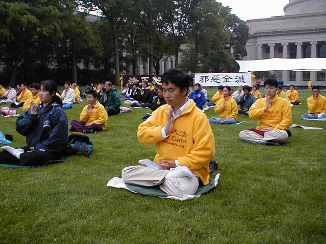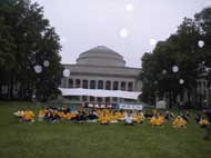 六月三日清晨,来自缅因州,新罕布什尔州,麻州,纽约上州及加州的80来位大法弟子,赶到波士顿的麻州理工学院前的大草坪,共同参加了全世界大法弟子同步铲除邪恶的伟大正法行动。