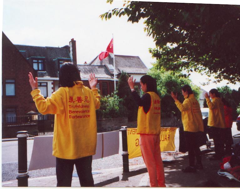 大法弟子在大使馆前炼功
