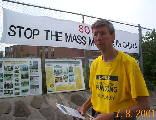 纽约居民鲍迪斯7月3日和其他步行者从曼哈顿的中国领馆出发,他计划步行到华府,他说:“这是人权问题,是史无前例的不断升级的暴行,而且绝对没有理由如此没有人性地对待人民,法轮功是非常平和的修炼。”