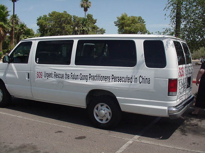 随后我们开始向Sacramento进发。我们在Sacramento吃了晚餐。大家轻松的交谈。从湾区来的10几位同修也加入我们的队伍一起去雷诺(Reno)。明天我们在那儿也有一个活动。一路上我们不断的分发大法的资料。我们大家为有这样一次向美国民众澄清真相的机会非常高兴。