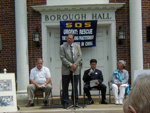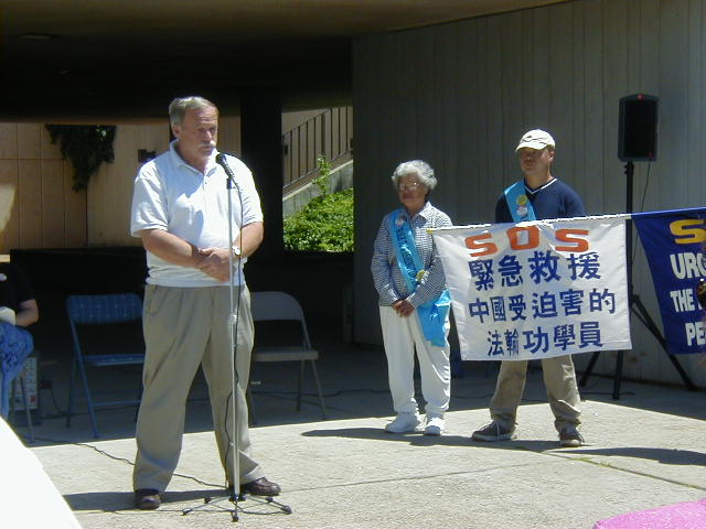 赛芮维尔市市长肯尼迪·奥布岚先生尽管有其它事务需要处理,但还是专程赶来发表演说,对中国大陆镇压法轮功予以谴责。他高度赞扬法轮功为社区做出的无私奉献。他说:“我们生活在一个来自不同土地的人民所组成的美好的国家,能够讲他们头脑中和心里的话。”“我们对想要把你们从这个地球上除掉的中国(江泽民)政府感到悲哀。我们赛芮维尔市愿尽一切努力帮助你们停止镇压。”