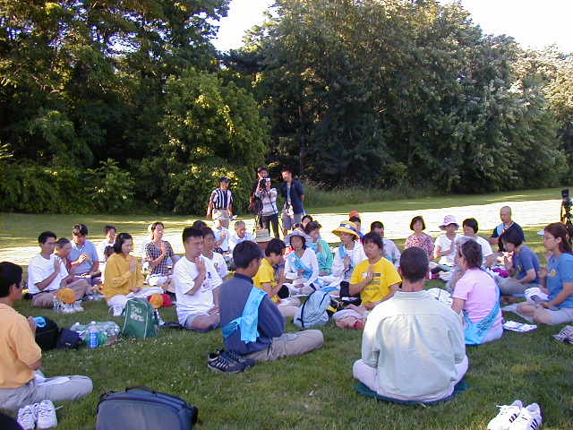 下午3点,来自波士顿和康州的6名步行学员与纽约新泽西的15名步行学员在爱迪生市胜利会师。之后步行队伍在当地学员的陪同下来到了Highland Park市的公园交流心得和共同发正念。