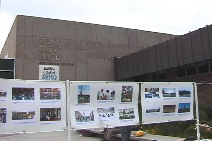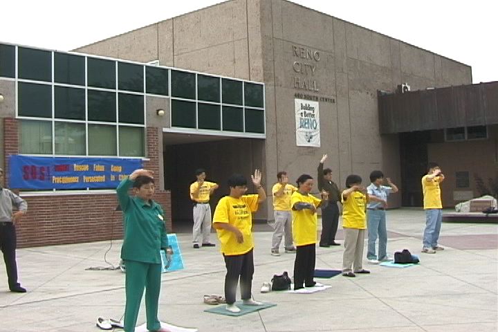 7月的雷诺城通常是闷热的,但是当我们在市府前炼功时天气却很凉爽,微微的凉风一阵阵的吹过,一点没有夏季的暑气。中午12点时我们结束了新闻发布会,湾区的6名学员一直送我们到雷诺城并和我们一起参加活动,当我们离开时,他们还留下来继续发资料。