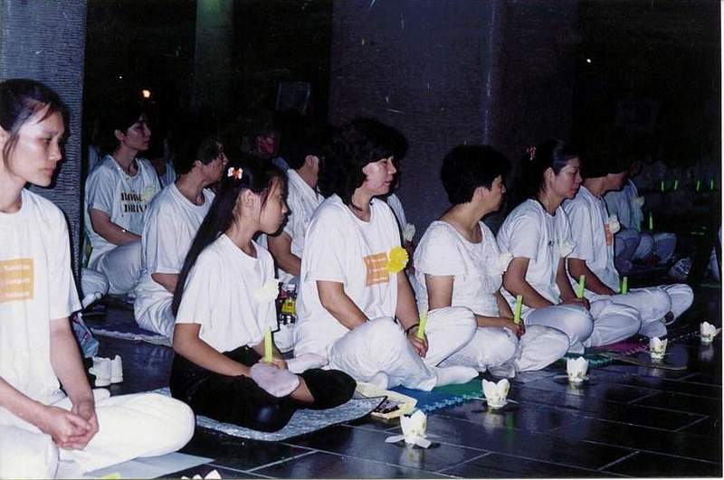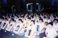 | 着白衣女学员手持伟大修炼者的照片,场面庄严肃穆 | 揭露江泽民犯罪集团所犯下之弥天大罪。并予以严厉谴责,并呼吁各界伸出援手帮助制止这场疯狂迫害 | 学员齐发正念除恶前,纯净自己 |