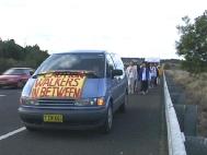 3月5日下午3点左右,我在北京遇到几位功友:有两个是三年级的小功友,有他们的奶奶、妈妈,还有澳大利亚的华人功友。我们从天安门广场地下通道刚上来就看见武警三步一岗五步一哨,便衣特务遍地都是。我们没走30米,过来两个武警拦住我们,问我们是不是炼法轮功的,我们说“是”,两个武警就把我们推到广场边。我说你们小年轻的不要打骂法轮功学员,我们都是好人,法轮功是正法。在他们不注意的情况下,我和澳大利亚华人大法弟子拉开了“法轮大法好”的横幅,武警马上过来抢走横幅把我们押上警车。