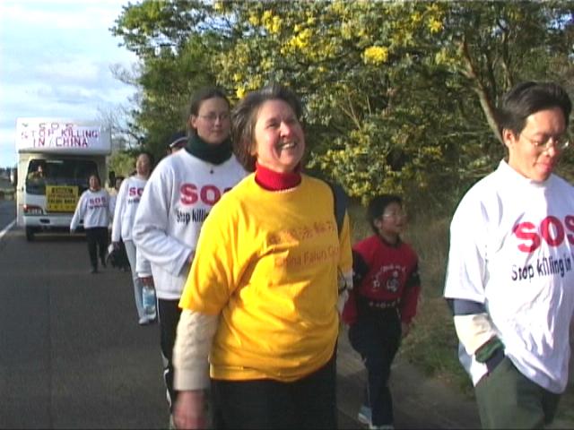 队伍中年纪最大的黄景然女士已七十三岁,她从七月三日在中国大陆驻纽约总领馆前出发,十天来虽然体力上是一大考验,但是她将继续走下去,并参加十九日在华盛顿的大游行。