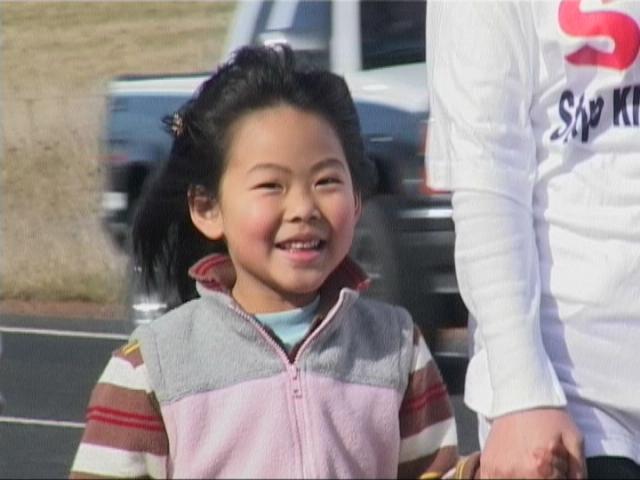 洪和他的妻子戴芙妮(Daphne)身穿黄色T恤衫,上写“中国:停止迫害法轮功”。他们一岁的女儿舟(Chou),戴着一个写着相同内容的徽章。