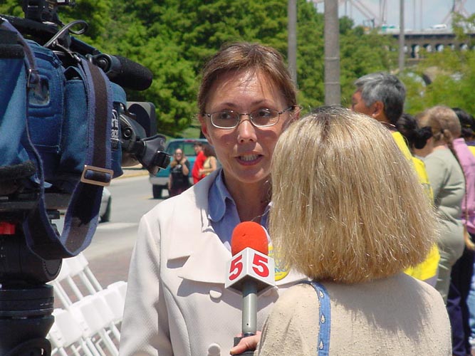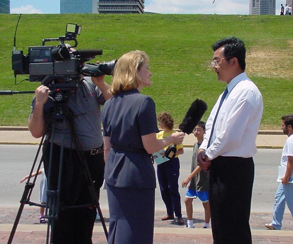 当地最大的一家报社圣路易斯邮报(St.Louis Post Dispatch)的记者赶了60英里的路程参加新闻发布会,并对学员进行了详细的采访,直到新闻发布会结束后还在和我们交谈。她说,“我急于知道事实,并做出负责任的报导”。(译者注:四个电视台均在当晚的新闻节目中报导了这次活动)。密苏里的联邦众议员莱西-克雷派助手马克-欧度姆出席会议并致词。联邦众议员,民主党领袖理查德-哥菲提也写信给我们。两位议员均表示了他们强烈的关注和支持,并呼吁中国政府停止对法轮功学员的迫害。会议期间,麦克风偶有间断。一位学员说,当她发正念时,麦克风立即就又响了。