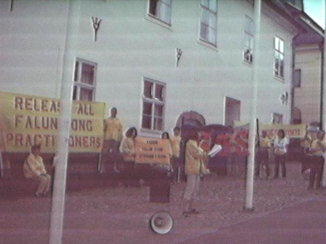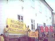 “我坐在这里,第一,是要告诉中国领事馆,告诉中国政府,随便杀人是不对的,杀修炼真、善、忍的法轮功学员更是不对。我想,领事馆的人也会有善心,希望能唤起他们的良知,正确认识大法,也是在救度他们;第二,我要告诉世人,中国杀害修炼真、善、忍的人,这不仅是对法轮功学员的杀害,也是对全人类美好心灵的杀害,等于是剥夺了人做好人的权利!我坐在这里,没有政治目的,就是要为世人争一个做真、善、忍的好人的权利!其实,世人都应该问一问自己:江泽民为什么敢如此逞凶,难道你没有责任吗?”