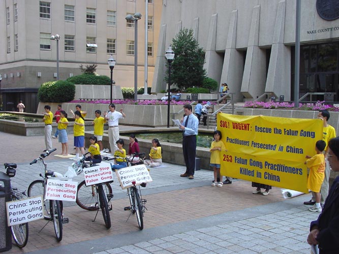 7月16日上午,由佛罗里达州出发的紧急救援自行车队到达了离华盛顿一个多小时车程的城市-Fredericksburg。维州、DC和马里兰州的学员在Fredericksburg市政府召开了新闻发布会。Fredericksburg市的市长Bill Back应邀出席了新闻发布会并发表了讲话,赞扬法轮功学员为坚持信仰而付出的可贵精神。其间,几位参加骑车到DC活动的法轮功学员在发布会上呼吁紧急救援受迫害的中国法轮功学员。这是他们发起这次活动的主要目的。两家媒体进行了现场采访。