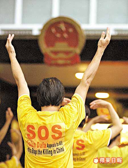 苹果日报图片报导:香港法轮功学员抗议镇压