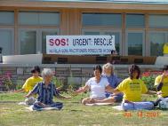 【明慧网2001年7月18日】苹果日报7月17日图片报导:香港法轮功学员连续一星期在政府总部外练功,抗议中国政府镇压法轮功学员,他们将在周五镇压两周年举行大型活动作出申诉。凌树辉摄。田纳西州那什维尔新闻2台:前中国居民抗议人权记录