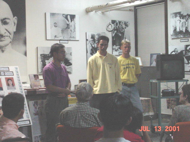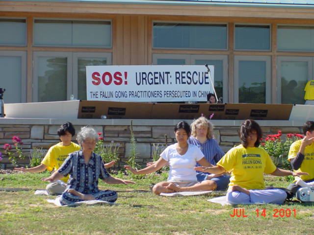 【明慧网2001年7月18日】波特兰先驱报2001年7月16日报导:在新罕布什尔州朴茨茅斯市,二十多人在周日下午的旧北区教堂前的庭院中站立或打坐。一些人在观看,一些人在问问题,其他人则象警官一样,仅仅是驱车经过。