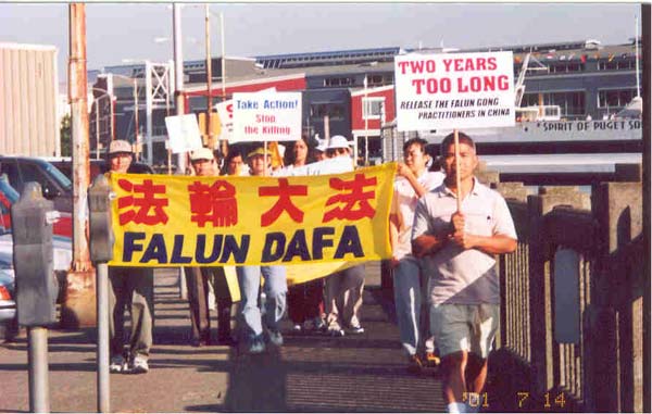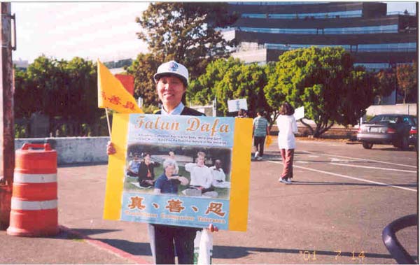 【明慧网2001年7月18日】橙县纪事报(The Orange County Register)2001年7月15日报导,三名橙县法轮功学员正与美国各地的学员一起进行抗议,以唤起世人对中国暴行的关注。美联社报导:法轮功修炼者前往华盛顿抗议