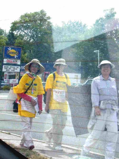 7月15日,弟子们又搞了一次游行活动。三十多位弟子打着大法横幅,举着大陆大法弟子受迫害的展板和SOS、紧急救援等小标语牌,从康可迪亚(CONCORDIA) 大学出发,沿圣.凯瑟琳(St. Catherine)大街向中国城走去。因15日仍是集市日,又是周日,大街上仍是人山人海。