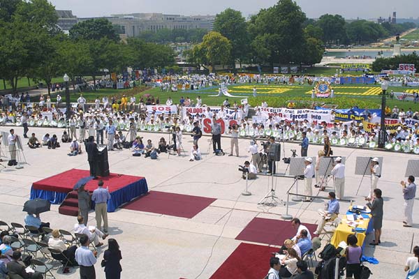 在新闻发布会上,法轮功学员介绍了中国法轮功学员被迫害致死的情况,并强烈要求中国政府立即停止监禁、逮捕和酷刑折磨法轮功学员。美国国会威尔斯通等六名参议员以及部份人权活动人士也参加了这次集会并发了言。他们呼吁社会各界共同努力,阻止中国政府对法轮功的继续镇压。