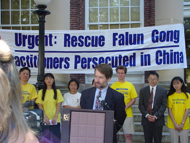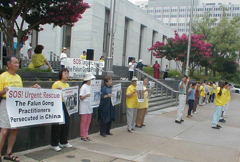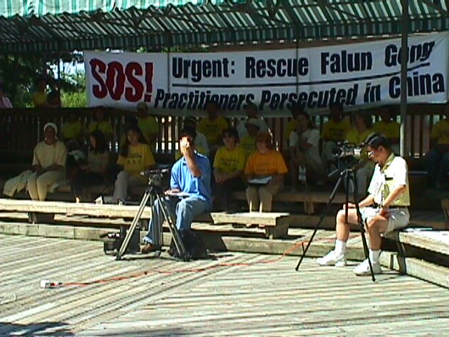 媒体准时到场了,有电视9台(ABC),12台(NBC),19台(FOX)和24台(当地有线电视)。ABC采访了我,他们的第一个问题便是关于奥委会让中国举办2008年奥运会。我告诉他们,法轮功对此没有态度,我们只是希望这能帮助中国停止迫害,以改变它的人权记录。过了一会儿,他用另一种方式问了同样的问题,我也换了方式,给了他同样的回答。这是我唯一的一次电台录像采访。