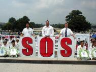 从国会大厦上放眼望去,弟子们白衣如雪,秩序井然。满目都是横幅和图片,满目都是巨大的三个红色大字--“SOS”。在弟子们各就本位之后,新闻发布会正式开始。