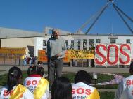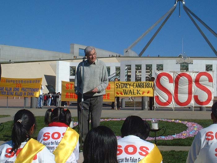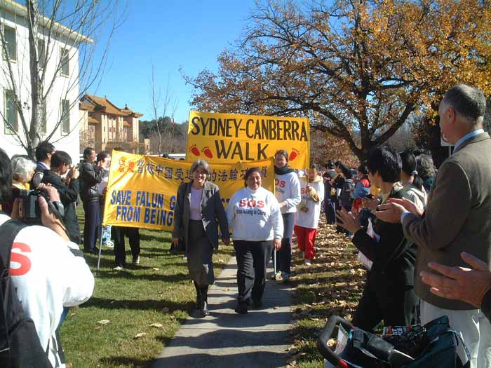 【明慧网2001年7月21日】在长途步行的法轮功学员到达堪培拉时,坎培拉特区议员凯瑞.塔克(Kery Tucker)加入了步行的队伍,和学员一起走完了通向国会大厦的最后一段路。