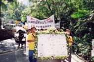 当天天气晴朗,举行活动的广场在周围大片绿地的衬托下显得份外耀眼。参与此次活动的除了台北大法弟子外,还包括远从桃竹苗及台中等地搭车赶过来的弟子。下午3:00,各地大法弟子陆续到齐。从台北市内湖区来的李姓学员表示:“最近有些讯息,如江泽民集团宣称要在7.20之前全部转化大法弟子,及企图用塑胶袋窒息坚贞不屈之法轮功学员等,都暴露出了镇压的邪恶,因此大家将透过这个活动,共同发正念,清除迫害大法的邪恶,并唤起世人的良知。”