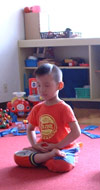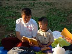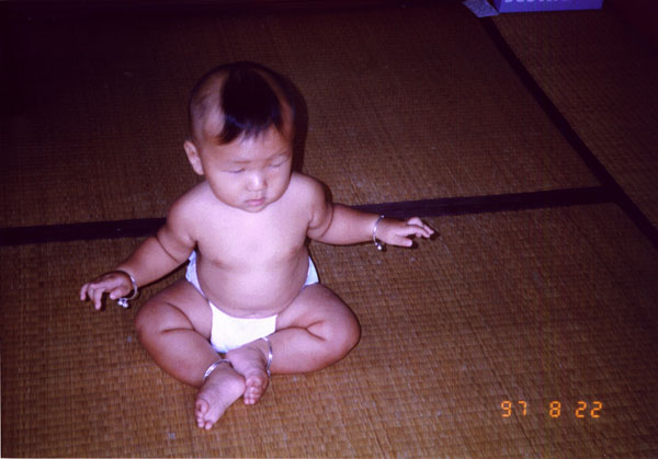 1)1997年8月的一天,我们忽然感到孩子很安静。过去一看,原来6个月的儿子在安详地炼着神通加持法!