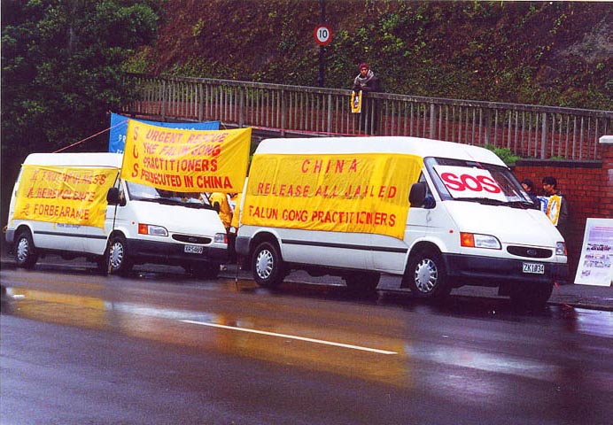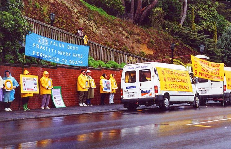中午12点,事先被通知学员将要递交信件的大使馆,在学员们一再按铃的情况下仍旧紧闭大门,学员只好把信置于门间。这一场面被记者摄下。下午,两位学员前去查实信件是否收到,接待的人说不接受信件,并说信在外面,待两位学员出来找到信后,再想递交时,使馆的自动玻璃门已被锁上,一个堂堂大国的使馆,协同迫害学员,却连一封信都不敢接。