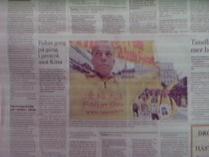罗兰显得有些疲劳,他说:“我们走了六天,每天40多公里。有一段时间我几乎坚持不下去了,我穿着凉鞋走了160公里脚非常痛,然后我炼了一会儿法轮功,顿时觉得好多了。我们这几天都睡在学校的运动厅里,并有一辆服务车跟着我们,里面有我们的行李。