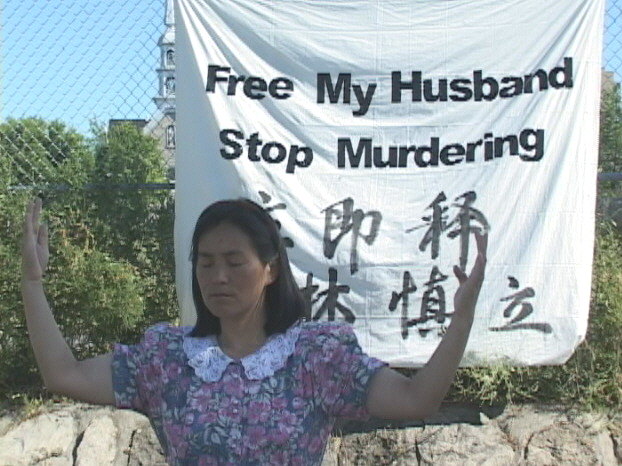 昨日,加拿大公民、法轮功学员李进宇开始了在中国驻加拿大大使馆前进行为期两周的静坐行动,抗议江泽民犯罪团伙非法关押她的丈夫林慎立。