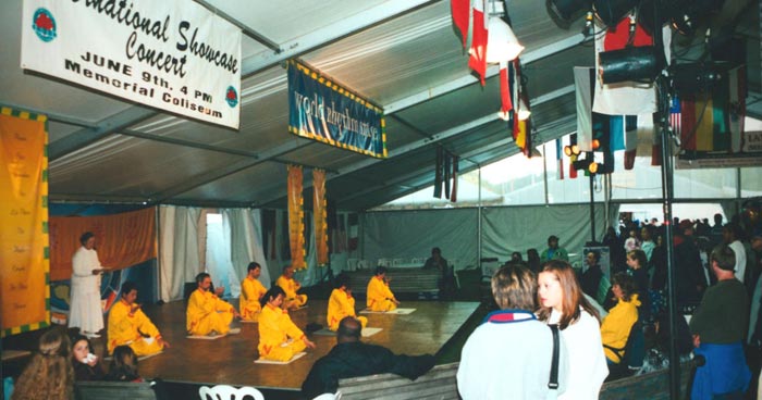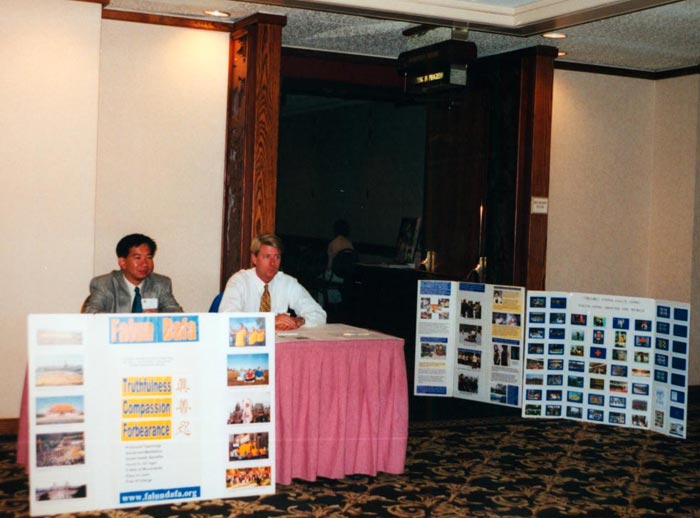 2001年7月17-20日,西人学员在Multnomah County Fair租了场地,几位没有去DC法会的学员在当地弘法四天。我们进行功法演示。感兴趣的人过来看展板,并高兴的拿走大法资料。一些人早已听说了法轮功及在中国发生的迫害,他们表示在密切关注与法轮功有关的消息,并表示深切的同情。听说我们每个月有免费教功讲座,有些人表示要来学功,并留下了联系电话,还有人当场买了大法书籍。特别是有许多孩子,当走过我们的展板时,表示出了极大的兴趣,过来询问这是什么,当听到这是真、善、忍的修炼,教人做好人,高兴得拿着资料跑向父母,并高诉他们。有的小孩看到我们炼功,天真的说:“我也要炼”,“我也会做这个(打坐)”。