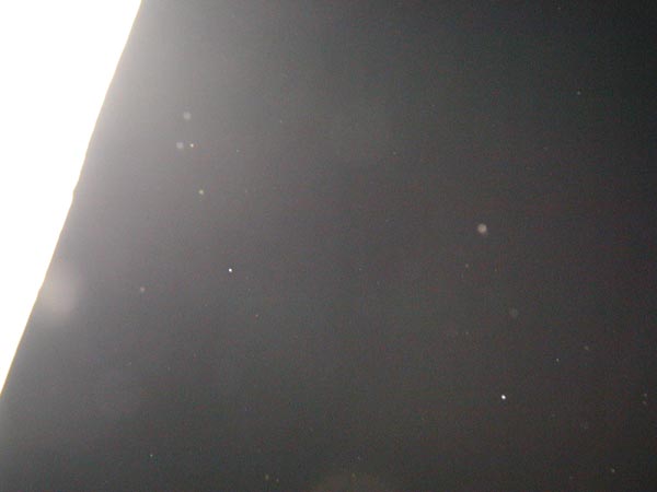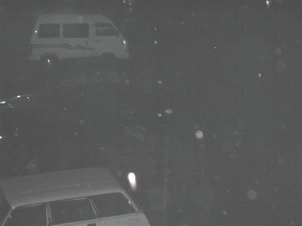 我在电脑上打开自己刚才所拍的照片,一幅幅奇异的景象展现在面前,虽然以前看过明慧上登过的漫天飞舞的法轮的图片,但是面对着自己几分钟前刚刚拍到的真实景象,我还是惊呆了。第一张p11是我刚出楼门时拍的,能看到对面住宅楼的影像,p12-p15当时都是对着天空拍摄的,则可以看到大量飞舞的法轮,有大有小,颜色各异,十分壮观,但是另一些我拍摄的地面的照片,却乌黑一片,什么也看不清,同样的时间,同样的光线,却照出了如此殊异的景象。此时外面雨已经下大了,我又拿着相机在阳台上对着天空拍了一些,见p21-p26(有几张有白色遮挡的物体是阳台的窗楣),时间是在8点46至8点52之间,9点左右,雨停了,p31便是此刻拍的,一场宏伟的战役仿佛已经结束。此时繁星点点又显露出来,北京夜晚的天空恢复了平静。