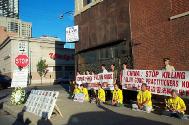 中午过后,更多的芝加哥大法弟子纷纷从四面八方来到中领馆炼功,发正念,清除邪恶。晚上7点,控诉这一惨案的新闻发布会在这里举行,会上弟子讲述了发生在万家劳教所的血腥事实,并接受了当地媒体的采访,呼吁更多的人起来共同制止这场血腥的屠杀。
