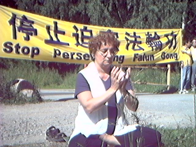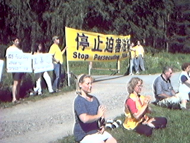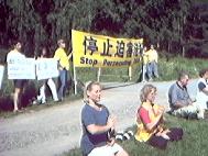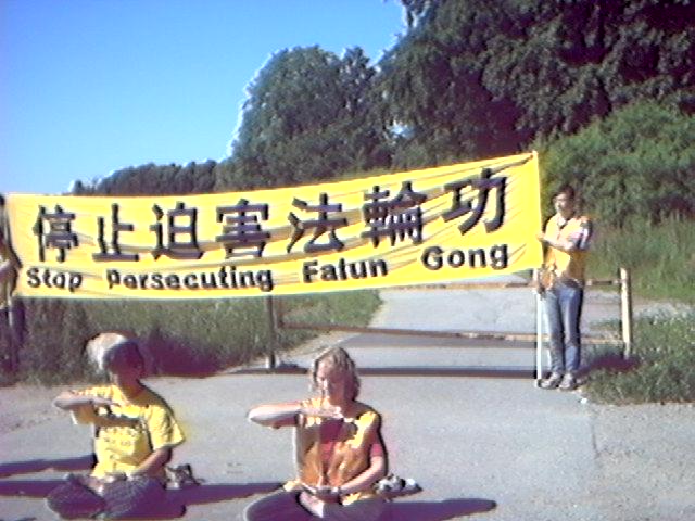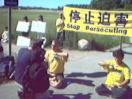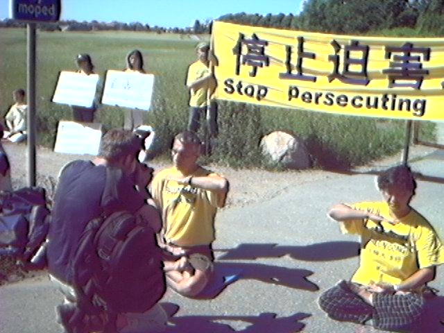 瑞典学员集体炼功抗议江泽民虐杀大法弟子