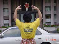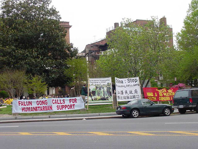 为了制止江XX及追随者这种疯狂的报复式的残酷迫害,7月3日,部分华府的大法弟子在中国大使馆前进行讲清真象、炼功和发正念活动,以全面彻底清除万家劳教所、全中国关有大法弟子的劳教所、“610”办公室及大使馆从上至下的所有控制人的邪恶,不能再让它们继续危害众生。学员们呼吁更多的美国公众起来共同制止这场血腥的屠杀。