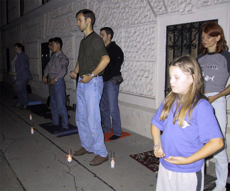 警察局的许可几个小时就发下来了。晚上,几个警察站在离使馆不远的地方,和我们谈起中国的现状,对国内受迫害的弟子深表同情。有的警察在呼吁停止镇压法轮功,释放赵明、滕春燕的信上签名。