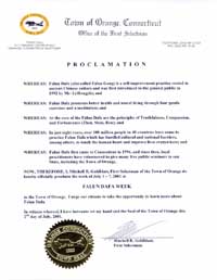 康涅狄格州西海文市市长褒奖法轮功精神运动