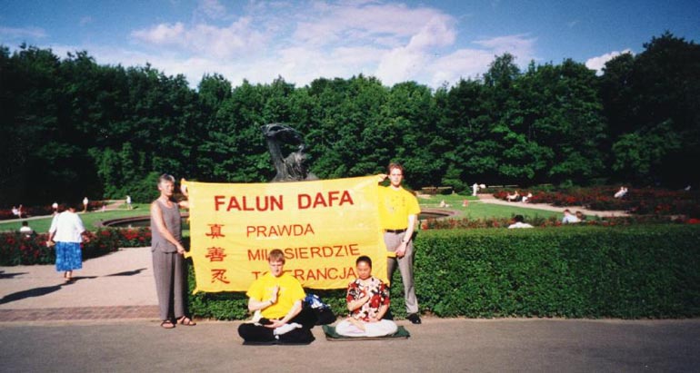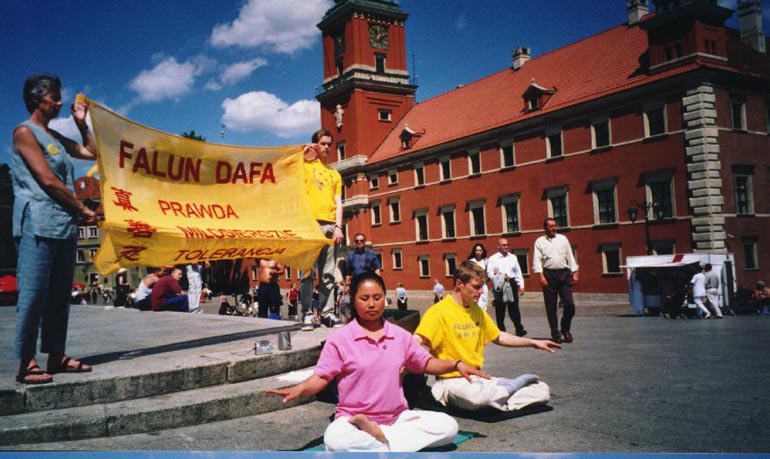 紧接着新闻发布会的是洪法活动,引起许多波兰市民很大的好奇与关心。由于有几位德国的修炼者担任翻译,使得来此参观的德国旅行团的游客也有机会听到报告。我们在西格蒙纪念碑前的广场上和著名的公园里炼功,其间多次乌云满天,而且刮风很大,但末了都没下雨。