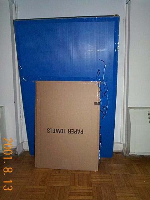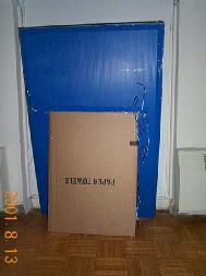 展板制作方法很简单,把真象材料贴在硬纸板(包装箱即可,各大菜市场均有免费提供的)或塑料板上,把一块小的硬纸板或塑料板用胶带固定在背后当支架即可。