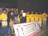 直至二十五日,日夜都将有其他法轮功学员和林先生一起静坐,学员们还将继续接受媒体采访、征集签名、向过往群众发放资料、讲清真相,并在中领馆前集体打坐炼功、发正念。