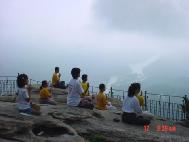 在周日的空余时间,我们还一起在山顶著名的烟囱岩上发正念铲除邪恶。